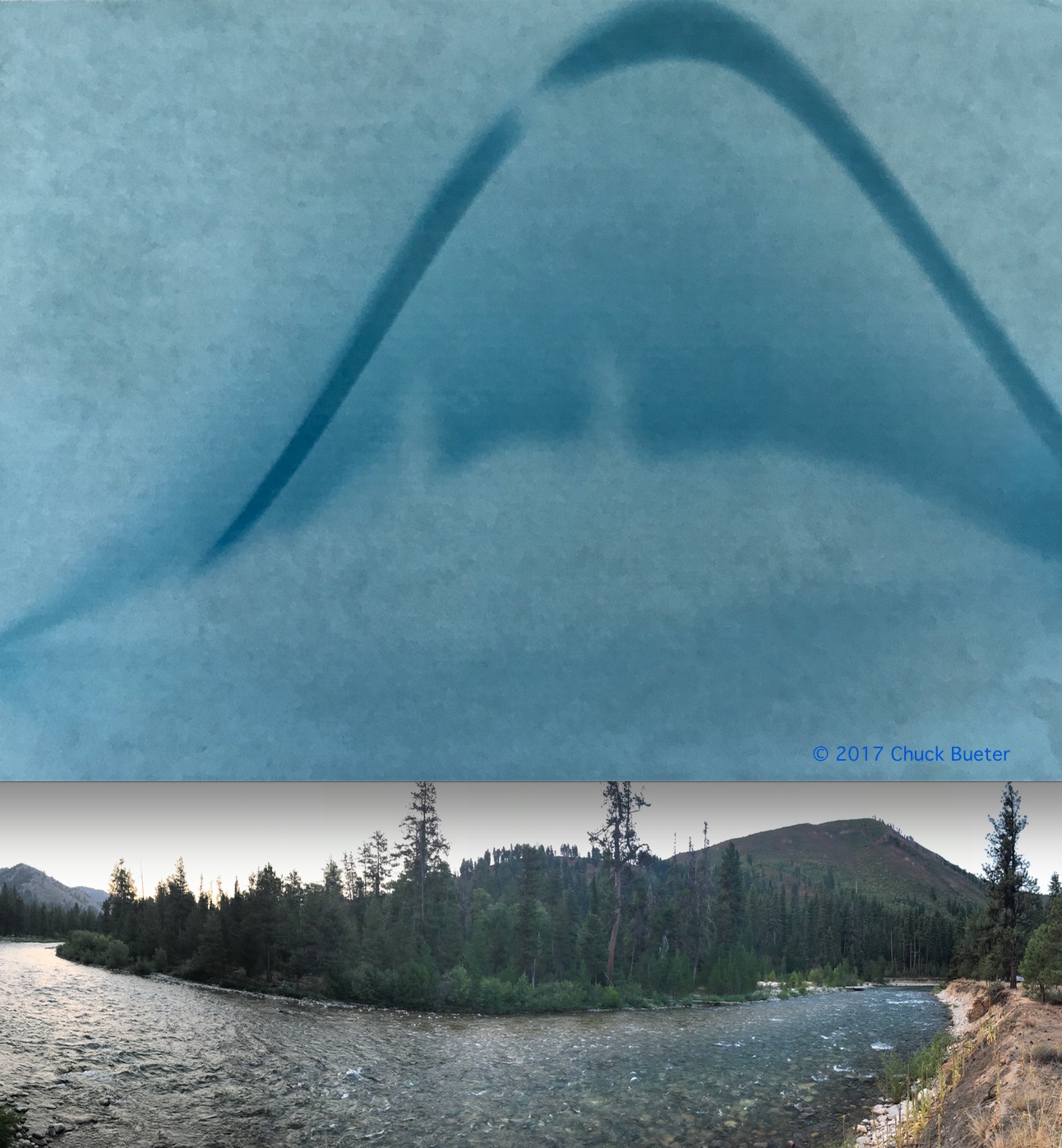 Explanation: Today is the September equinox. Heading south, the Sun's path through the sky will cross the celestial equator at 20:02 UT. Of course the equinox date results in (mostly) equal night and day all over planet Earth. But on August 21 the Sun's path through the sky found a little extra-night for some. Made with a drink can pinhole camera and light-sensitive paper, this creative solargraph follows the Sun's path on that date. An all-day exposure, it traces the Sun's arc still rising high in northern skies, aligned with a panoramic snapshot of the local landscape at the bottom. The gap in the arc represents the duration of the partial and total phases of the solar eclipse in clear skies over Lowman, Idaho, USA. There, the extra-night (totality) lasted for about 2 minutes. The broad gap in the Sun's arc also covers the loss of sunlight during the more extended partial eclipse phases.