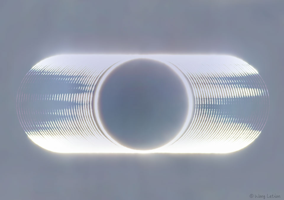 Explanation: What are those dark streaks in this composite image of a solar eclipse? They are reversed shadows of mountains at the edge of the Moon. The centre image, captured from Xiamen, China, has the Moon's centre directly in front of the Sun's centre. The Moon, though, was too far from the Earth to completely block the entire Sun. Light that streamed around the edges of the Moon is called a ring of fire. Images at each end of the sequence show sunlight that streamed through lunar valleys. As the Moon moved further in front of the Sun, left to right, only the higher peaks on the Moon's perimeter could block sunlight. Therefore, the dark streaks are projected, distorted, reversed, and magnified shadows of mountains at the Moon's edge. Bright areas are called Baily's Beads. Only people in a narrow swath across Earth's Eastern Hemisphere were able to view this full annular solar eclipse in 2020. Next month, though, a narrow swath crossing both North and South America will be exposed to the next annular solar eclipse. And next April, a total solar eclipse will be visible across North America.