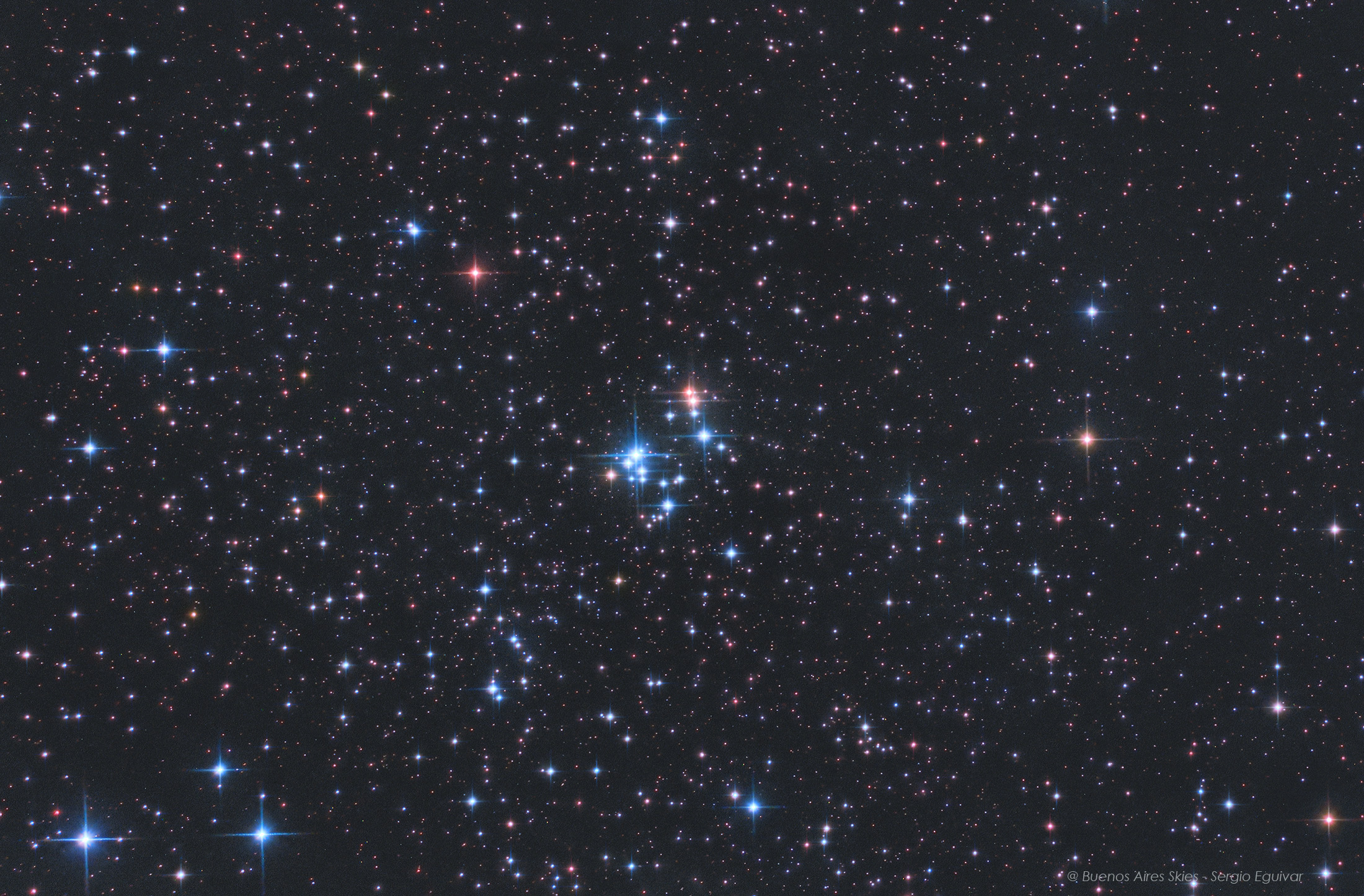 Explanation: For the mostly harmless denizens of planet Earth, the brighter stars of open cluster NGC 2169 seem to form a cosmic 37. Did you expect 42? From our perspective, the improbable numerical asterism appears solely by chance. It lies at an estimated distance of 3,300 light-years toward the constellation Orion. As far as galactic or open star clusters go, NGC 2169 is a small one, spanning about 7 light-years. Formed at the same time from the same cloud of dust and gas, the stars of NGC 2169 are only about 11 million years old. Such clusters are expected to disperse over time as they encounter other stars, interstellar clouds, and experience gravitational tides while hitchhiking through the galaxy. Over four billion years ago, our own Sun was likely formed in a similar open cluster of stars.