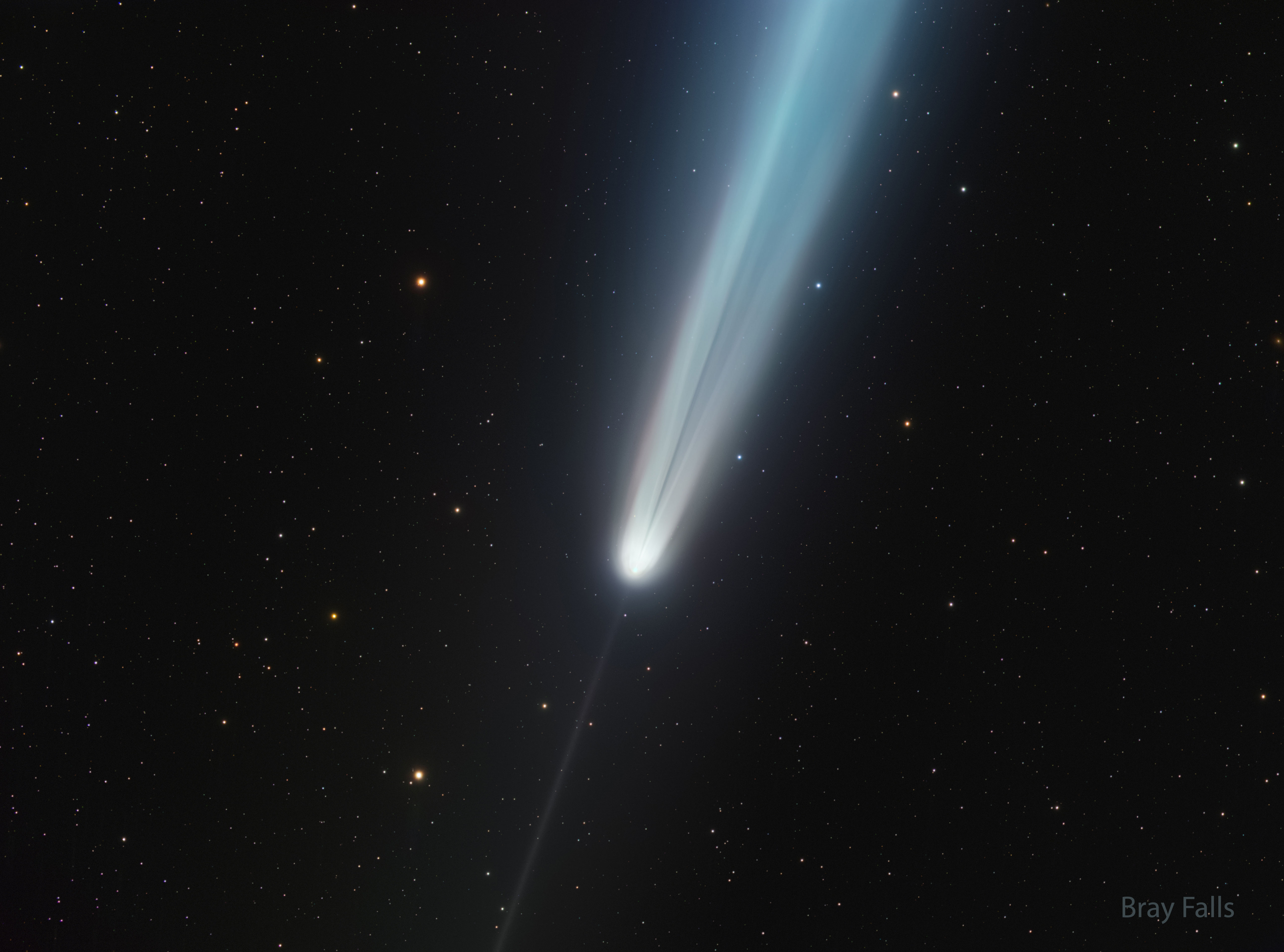 Explanation: What created an unusual dark streak in Comet Tsuchinshan-Atlas's tail? Some images of the bright comet during mid-October not only caught its impressively long tail and its thin anti-tail, but a rather unexpected feature: a dark streak in the long tail. The reason for the dark streak is currently unclear and a topic of some debate. Possible reasons include a plume of dark dust, different parts of the bright tail being unusually superposed, and a shadow of a dense part of the coma on smaller dust particles. The streak is visible in the featured image taken on October 14 from Texas, USA. To help future analyses, if you have taken a good image of the comet that clearly shows this dark streak, please send it in to APOD. Comet Tsuchinshan–ATLAS has now faded considerably and is returning to the outer Solar System.