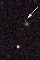 Explanation: Each red speck indicated above is a powerful quasar estimated to be over 100 times brighter than a galaxy. Yet in these Sloan Digital Sky Survey discovery images the quasars appear faint because they are extremely distant. Their distances have been indirectly gauged by noting how much the light they emit has been stretched to longer wavelengths by the expansion of the Universe. Because red light has the longest wavelengths in the visible spectrum, this stretch has come to be called "redshift" - the greater the distance, the greater the redshift. Astronomers use a number known as "Z" to quantify this cosmological redshift and the quasar at the left, with a Z of 5, was just proclaimed the new quasar redshift champion (from left to right the measured Zs are 5.00, 4.90, 4.75). What's the actual distance to quasars with Zs of 5 or so? ... about 15 billion light-years, give or take a few billion light-years depending on your favourite cosmology!