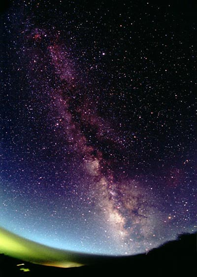Explanation: If sometimes it appears that the entire Milky Way Galaxy is raining down on your head, do not despair. It happens twice a day. As the Sun rises in the East, wonders of the night sky become less bright than the sunlight scattered by our own Earth's atmosphere, and so fade from view. They will only rotate back into view when the Earth again eclipses our bright Sun at dusk. This battle between heaven and Earth was captured dramatically above during the last few minutes of daylight on 1999 August 10 in Koumi, Japan. Dark dust, millions of stars, and bright glowing red gas highlight the plane of our Milky Way Galaxy, which lies on average thousands of light years behind Earth's yellow and green reflecting clouds. |