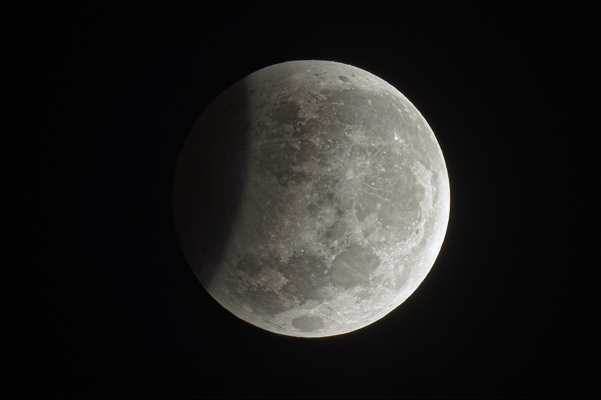 Explanation: August's Full Moon is framed in this sharp, high dynamic range composition. Captured before sunrise on August 8 from Sydney, Australia, south is up and the curve of the Earth's dark, umbral shadow is at the left, near the maximum phase of a partial lunar eclipse. Kicking off the eclipse season, this time the Full Moon's grazing slide through Earth's shadow was visible from the eastern hemisphere. Up next is the much anticipated total solar eclipse of August 21. Then, the New Moon's shadow track will include North America, the narrow path of totality running coast to coast through the United States.