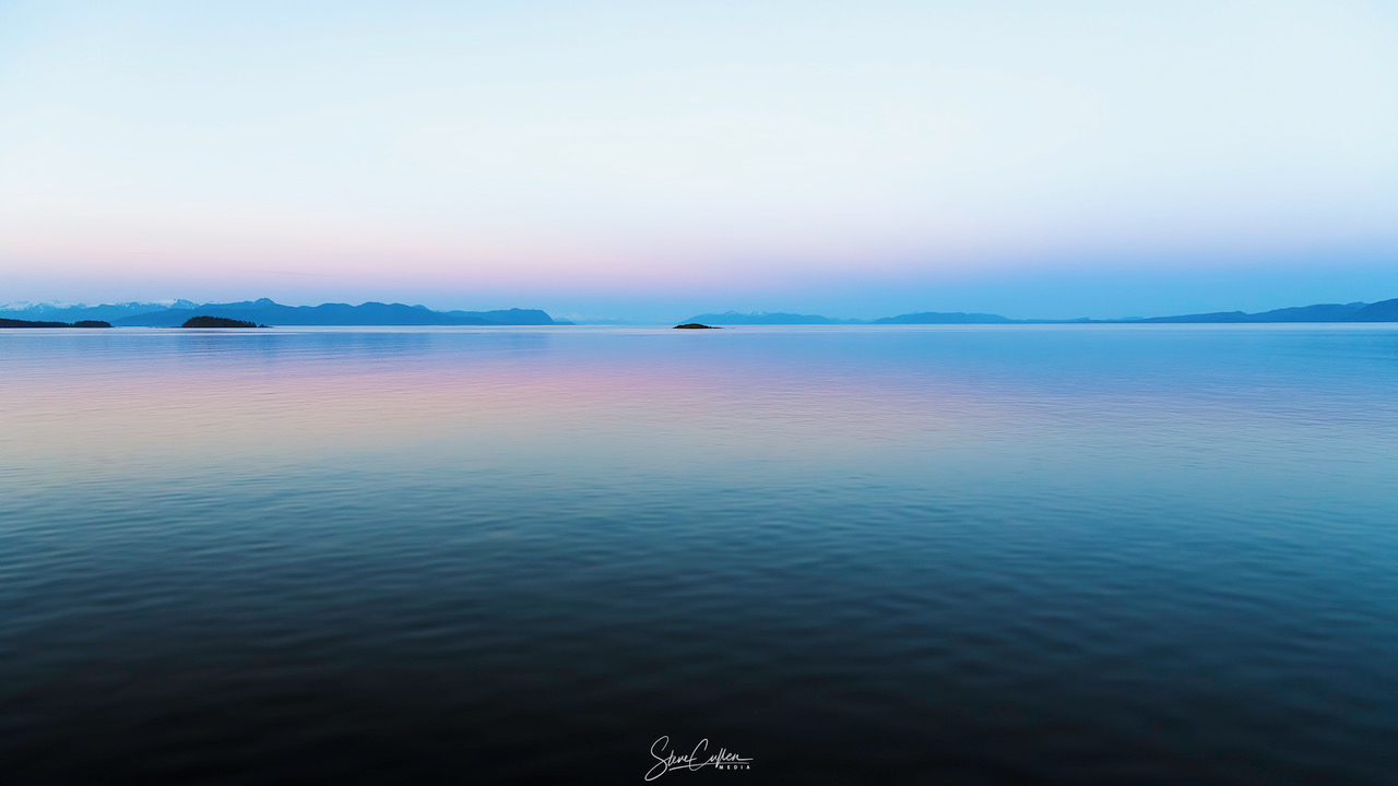 Explanation: At sunset look east not west. As Earth's dark shadow rises from the eastern horizon, faint and subtle colours will appear opposite the setting Sun. This beautiful evening sea and skyscape records the reflective scene from a cruise on the well-traveled Alaskan Inside Passage in the Pacific Northwest. Along the horizon the fading sunset gives way to the pinkish anti-twilight arch, more poetically known as the Belt of Venus. Often overlooked at sunset in favour of the brighter western horizon, the lovely arch is tinted by filtered sunlight backscattered in the dense atmosphere, hugging the planet's rising blue-grey shadow.
