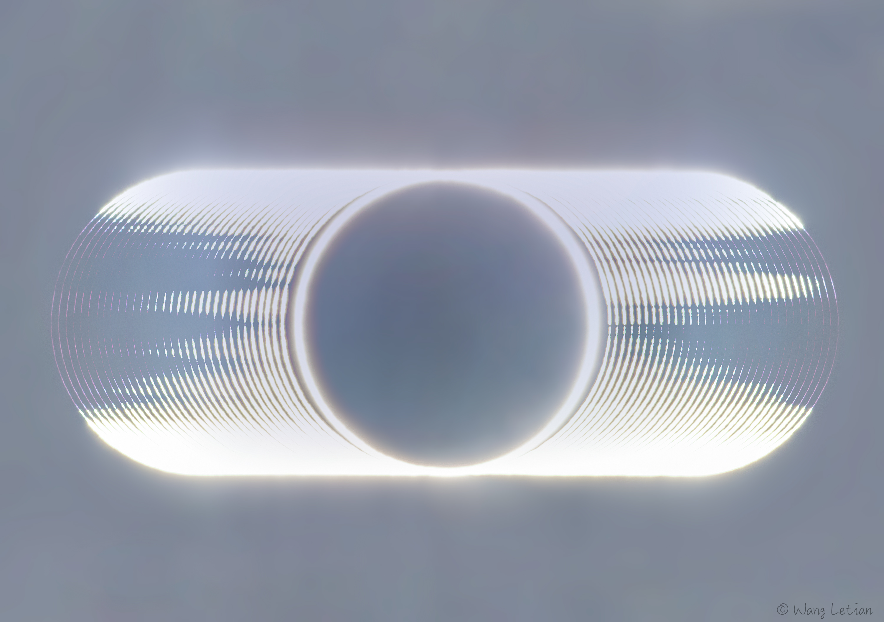 Explanation: What are those dark streaks in this composite image of yesterday's solar eclipse? They are reversed shadows of mountains at the edge of the Moon. The centre image, captured from Xiamen, China, has the Moon's centre directly in front of the Sun's centre. The Moon, though, was too far from the Earth to completely block the entire Sun. Light that streamed around all of the edges of the Moon is called a ring of fire. Images at each end of the sequence show sunlight that streamed through lunar valleys. As the Moon moved further in front of the Sun, left to right, only the higher peaks on the Moon's perimeter could block sunlight. Therefore, the dark streaks are projected, distorted, reversed, and magnified shadows of mountains at the Moon's edge. Bright areas are called Bailey's Beads. Only a narrow swath across Earth's Eastern Hemisphere was able to see yesterday's full annular solar eclipse. Next June, though, a narrow swath across Earth's Northern Hemisphere will be able to see the next annular solar eclipse. A total solar eclipse will be visible at the bottom of the world near the end of this year.
