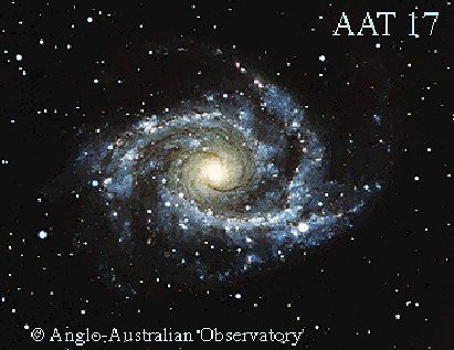 Explanation: NGC 2997 is a grand design spiral galaxy. Its small nucleus and sprawling spiral arms give it a type "Sc" designation. NGC 2997 is speeding away from us at about 1100 kilometres per second, which would place it at about 55 million light years distant, given current estimates of the expansion rate of our universe. NGC 2997 is thought to have a mass of about 100 billion times that of our Sun, but is probably less massive than our own Milky Way Galaxy. NGC 2997 is not seen face-on - it is thought tilted by about 45 degrees. NGC 2997 is particularly notable for a nucleus surrounded by a chain of hot giant clouds of ionized hydrogen.
